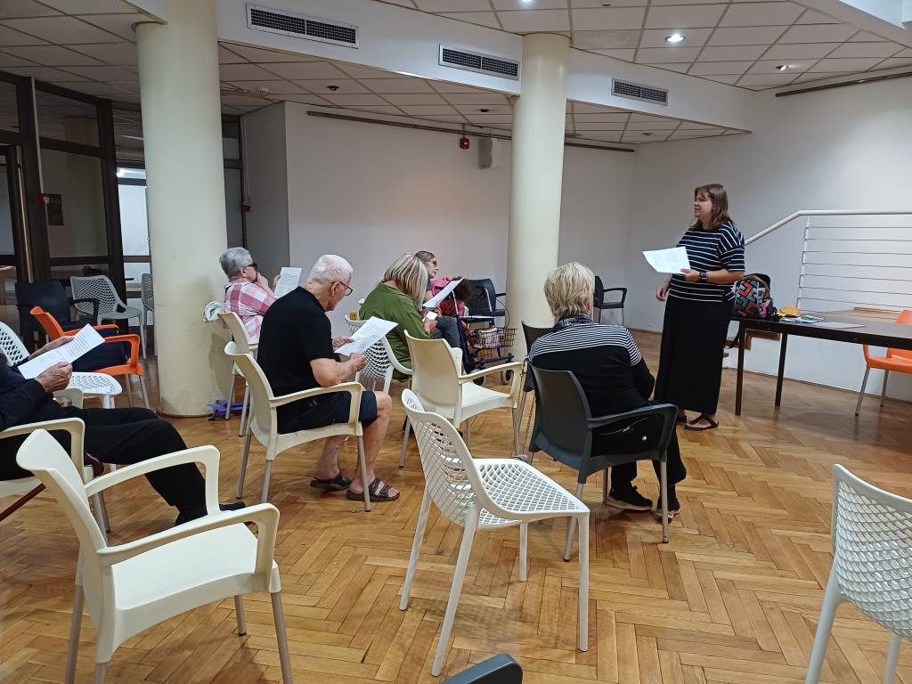 Upravo je ovo cilj projekta Zaklade koji 2025. provodi u Domu za starije i nemoćne osobe “Centar” u Zagrebu, Klaićeva 10. Nakon pauze od 5 godina i ostvarene druge Edukacije za voditelje bibliodrame Zaklada MDM nastavlja ovaj značajni projekt. Mjesečni bibliodramski susreti su započeli u Crnatkovoj 14. Radi obnove Doma na ovoj lokaciji, većina pokretnih korisnika je preseljena u Klaićevu 10 gdje se susreti nastavljaju održavati. Voditeljica bibliodrame je Katarina Aladrović Slovaček koja ima iskustva i drugih oblika rada sa starijim osobama, s radošću ističe vrlo aktivno sudjelovanje korisnika, sudionika bibliodramskog programa. Na susretima sudjeluje 10 do 15 korisnika Doma. Za uspješnost ostvarivanja projekta valja istaknuti doprinos socijalnih radnica Doma koje pripreme i angažiraju zainteresirane korisnike za ovu aktivnost.